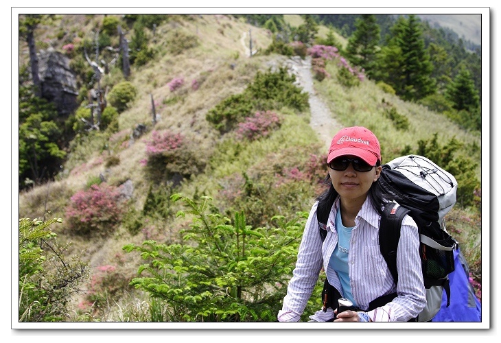 原以為簡單的一段路,沒想到走起來比之前更辛苦。我又開始出現不舒服的症狀,Mei也說她開始不舒服了。所以,開始坐下來休息,順便拍拍照。拍照時看的其實是遠方的369山莊,怎麼走了半天還是這麼遠!